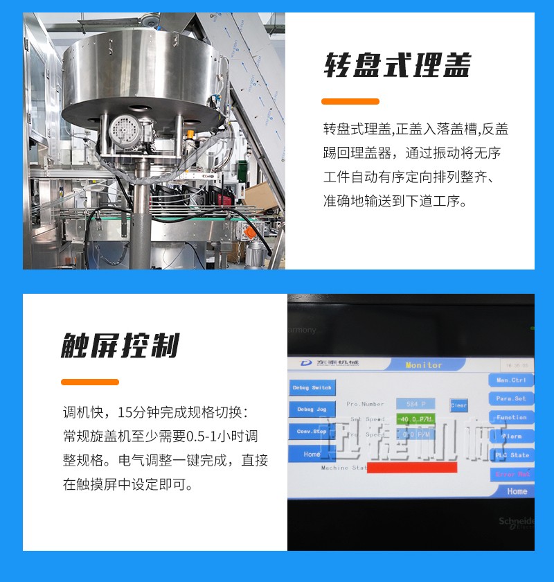 7、调机快,15分钟完成规格切换:常规旋盖机至少需要0.5-1小时调整规格。