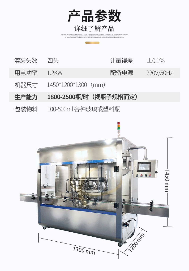 全自动四头辣椒酱灌装机适合中小口径三旋、四旋玻璃瓶调味酱的分装,适合酱料、含颗粒黏稠物料的灌装,物料接触部分均采用