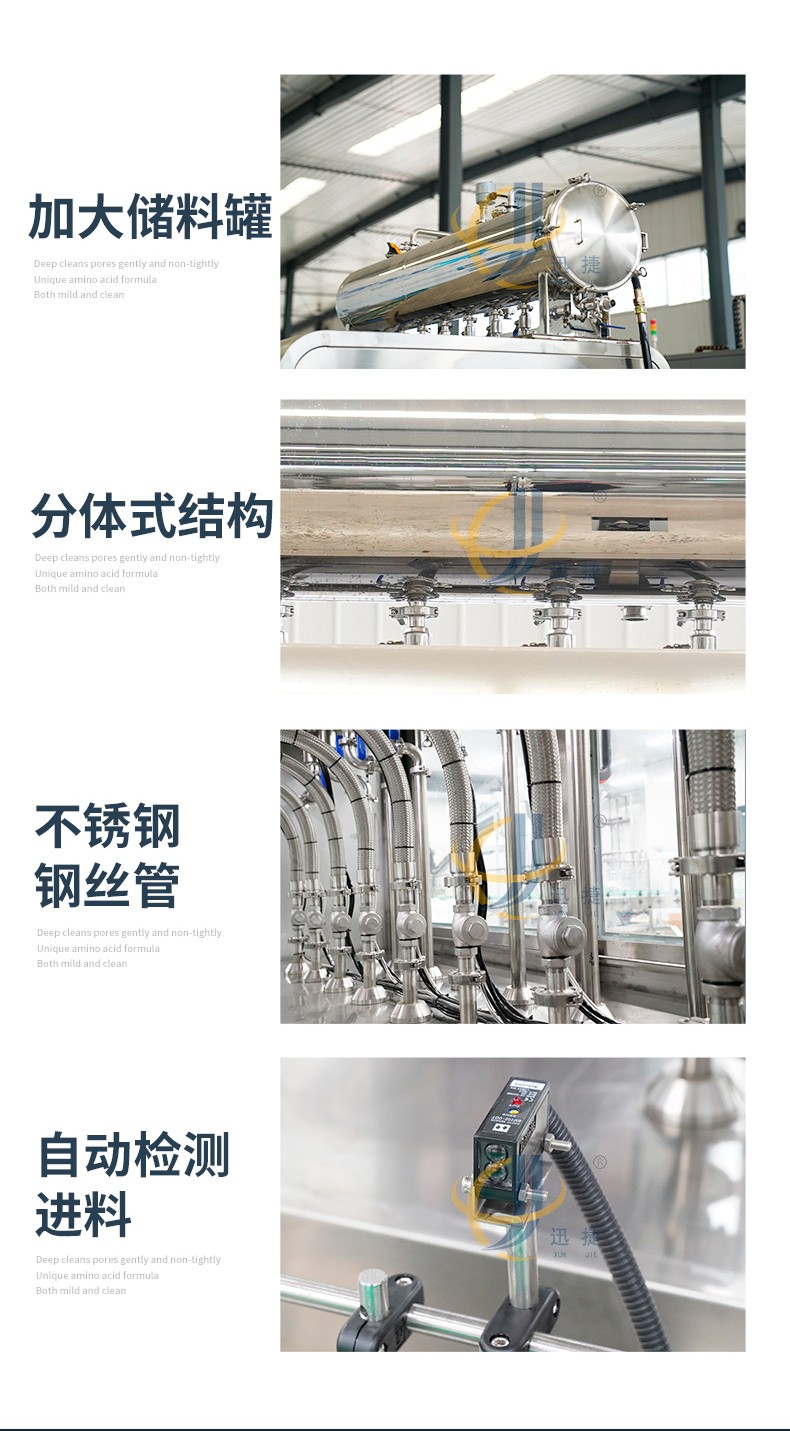 全自动液体灌装机用于灌装饮料、果汁,牛奶,酒精,消毒液,口服液,洗衣液等液体,广泛应用于食品,化工,医疗等行业