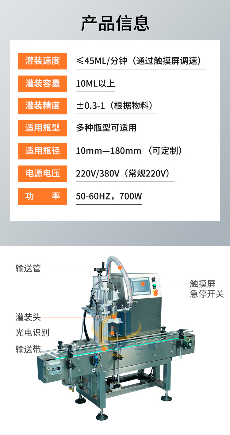 磁力泵全自动灌装机采用螺旋式定量原理,由触摸屏操作显示,设计新颖、外型美观,适用广泛、操作简