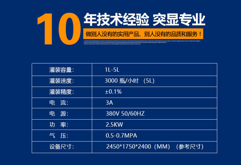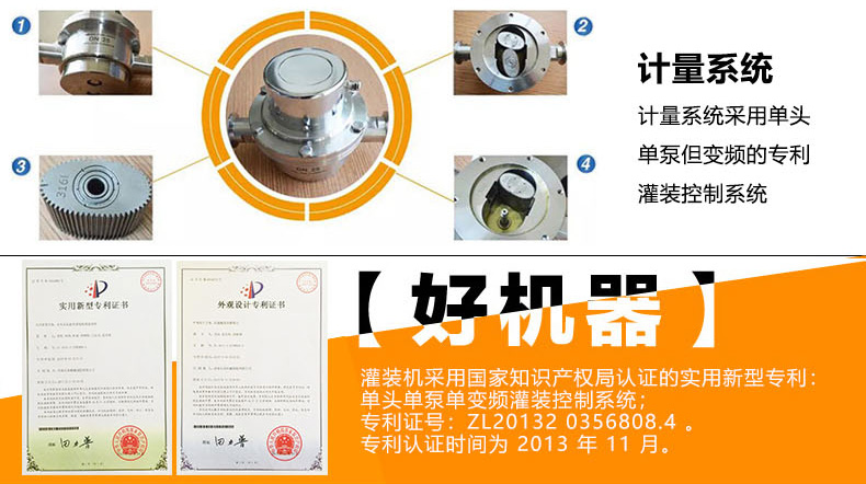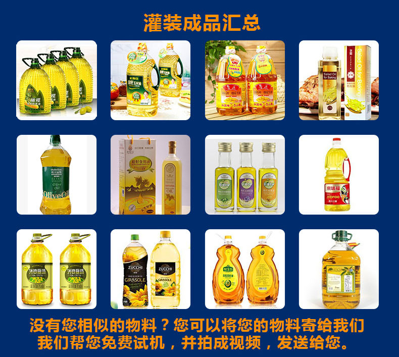 该系列灌装机采用流量计式计量灌装原理,多项认证,适用于各种规格(1-5升)的南瓜籽油、榛子油、牡丹籽油、芝麻油、核桃油、山茶油