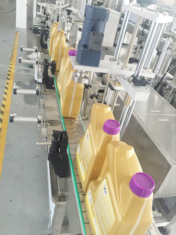 润滑油灌装旋盖一体机为活塞式计量方式。计量范围为1升-5升,离合式旋盖结构,确保旋盖合格率高,不伤盖。本设备为灌装旋盖一体机