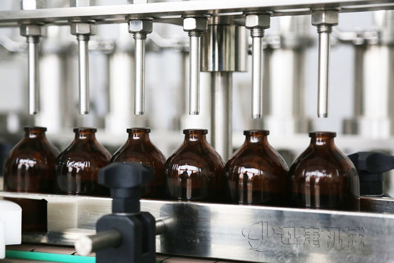 灌装时灌装头潜入瓶底,缓慢上升,可有效防气泡。灌装针头设有防滴漏装置,确保灌装精度,合格率大于99%。用柱塞式计量泵执行灌装,精度高;泵的结构采用快接式拆卸机构,便于清洗、消毒。