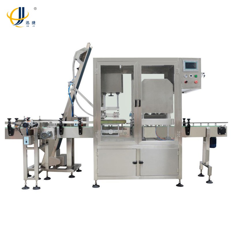 是我公司新研制的玻璃瓶自动上盖旋盖的设备,该设备自带抽真空功能,高效全密封真空室结构,真空度可按需要设定。经该设备抽真空旋盖的产品,能有效的延长保质期,避免空气与物品接触。