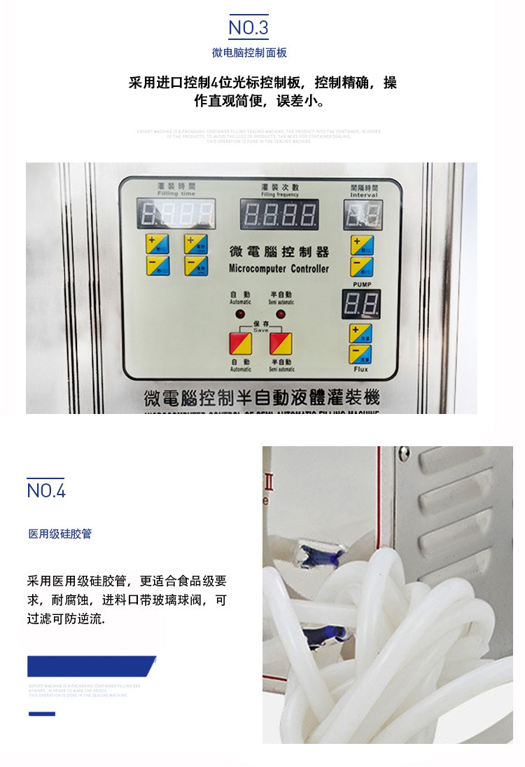 7、可配多个灌装头,常用的型号有:单泵机、双泵机和四泵机;